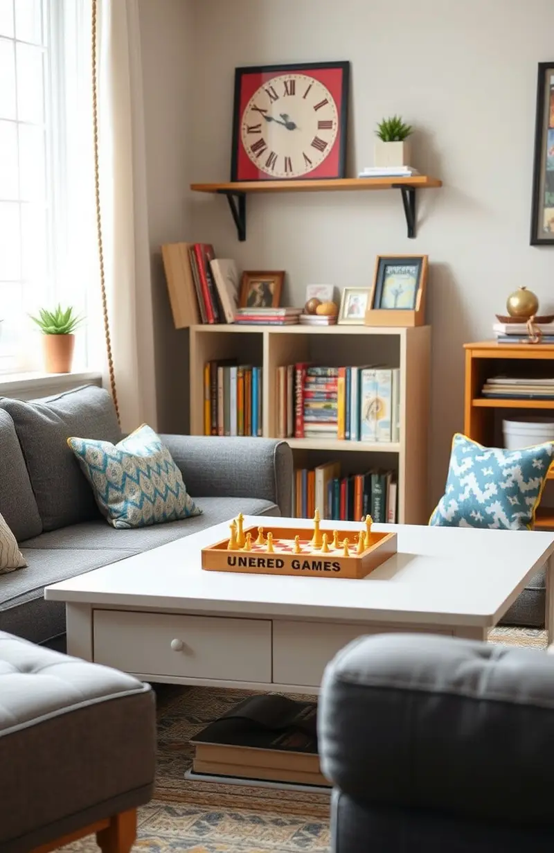 Use games you already own or find them second-hand. Personalize it with a small shelf to keep games organized.
