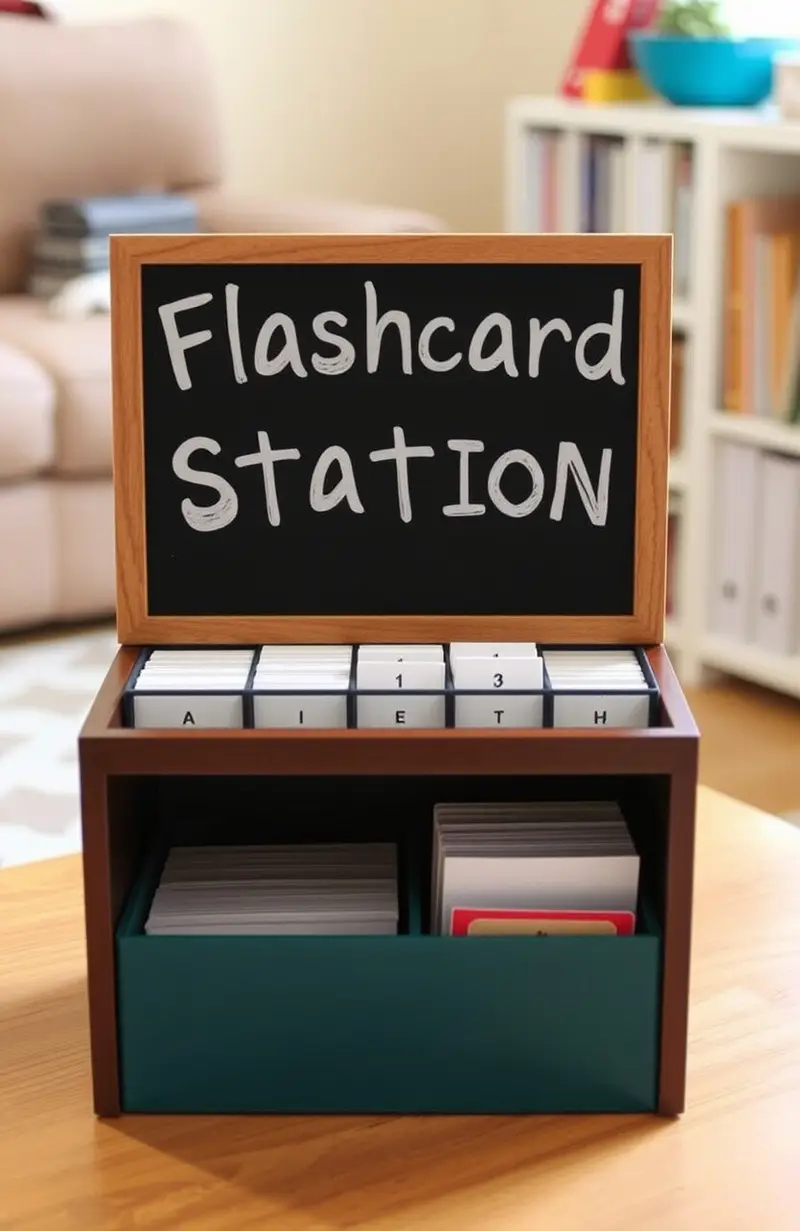 A flashcard station can be a simple yet effective learning tool. Use a small box to keep flashcards organized.