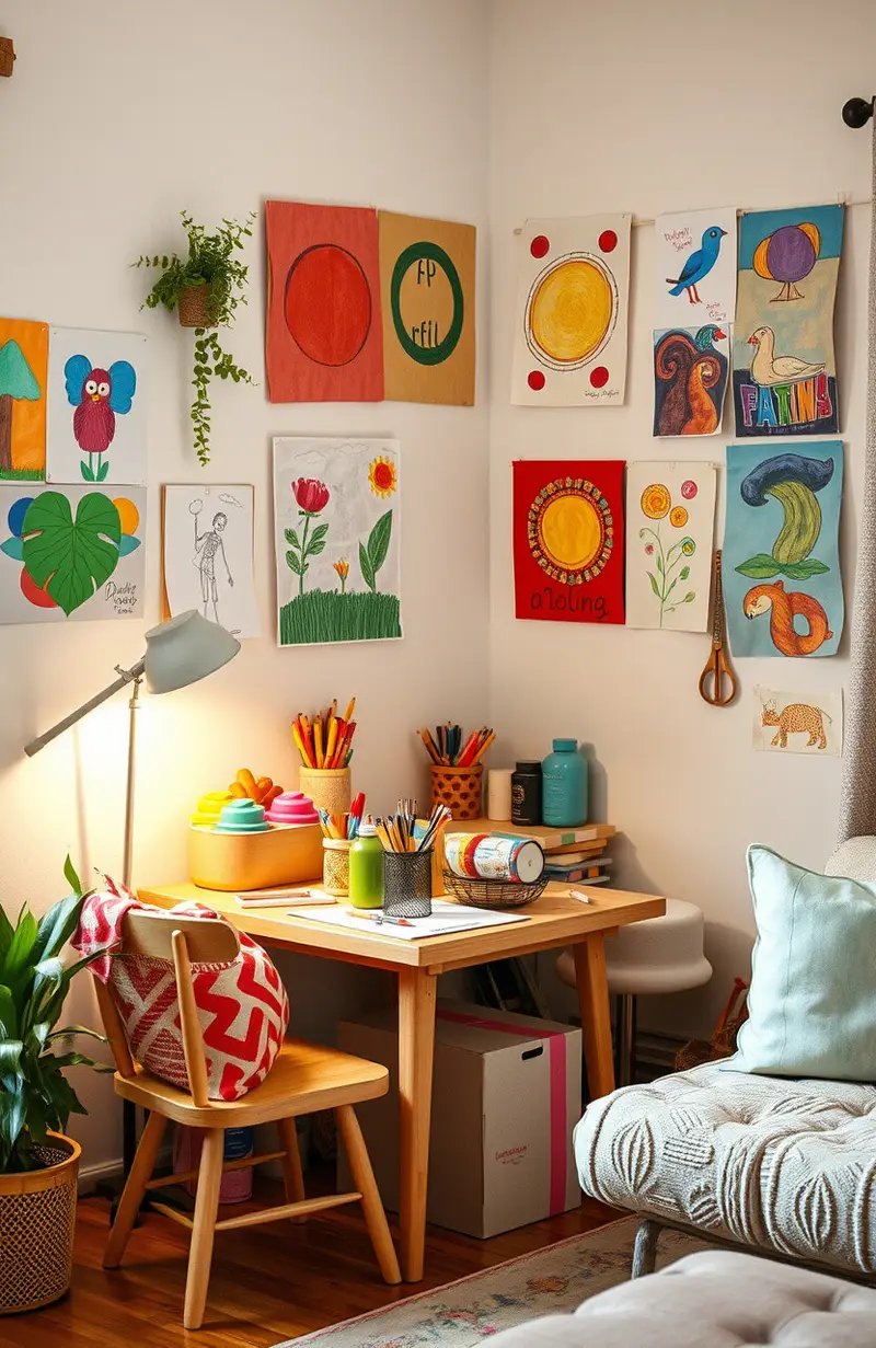 Transform part of your living room into an art corner filled with creativity. A small table with art supplies can work wonders.