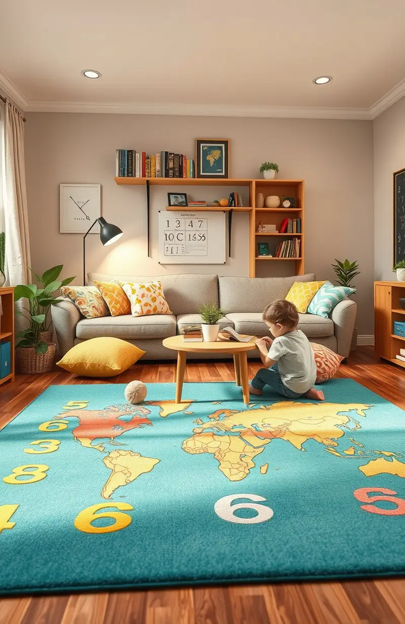 A learning rug can define a special learning area. Choose one with numbers, letters, or a world map.