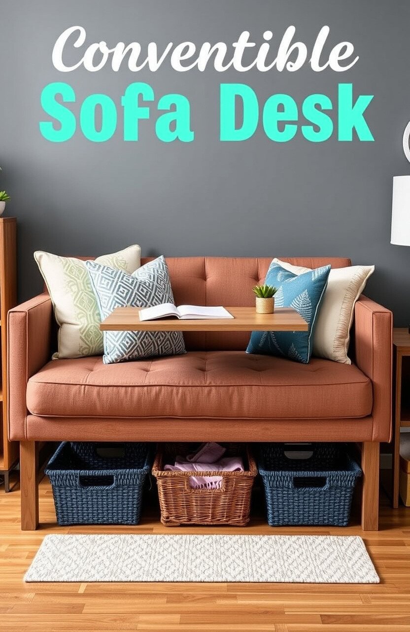 A convertible sofa desk offers a dual-purpose solution. It easily transforms between seating and a workspace.