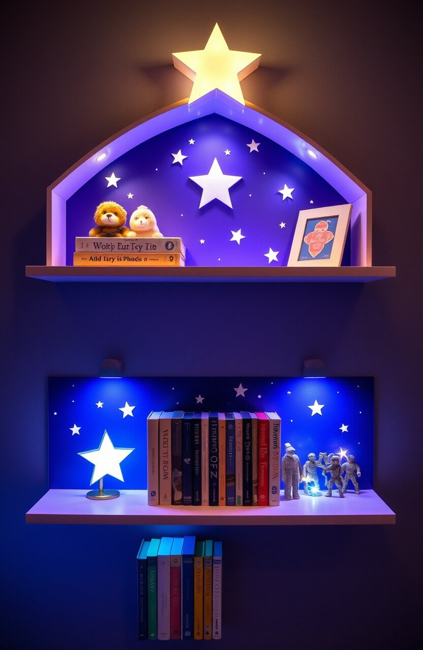 Starry night shelves create a magical, celestial theme in your homeschool. They’re perfect for holding books and small star-themed decor.