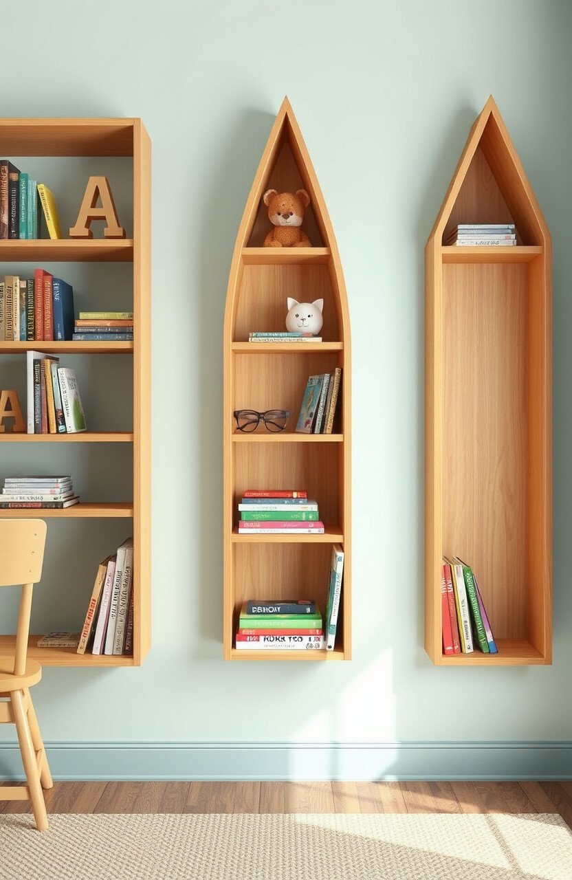 Alphabet block shelves are educational and decorative. They’re perfect for teaching kids their ABCs while storing books.