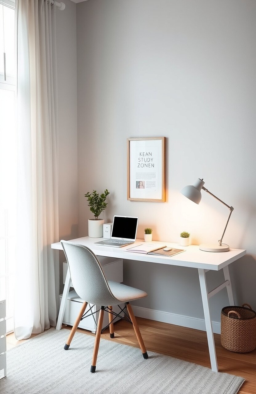Create a zen study zone with a clean desk, minimal decor, and soft lighting. It’s a stress-free space for focused learning.
