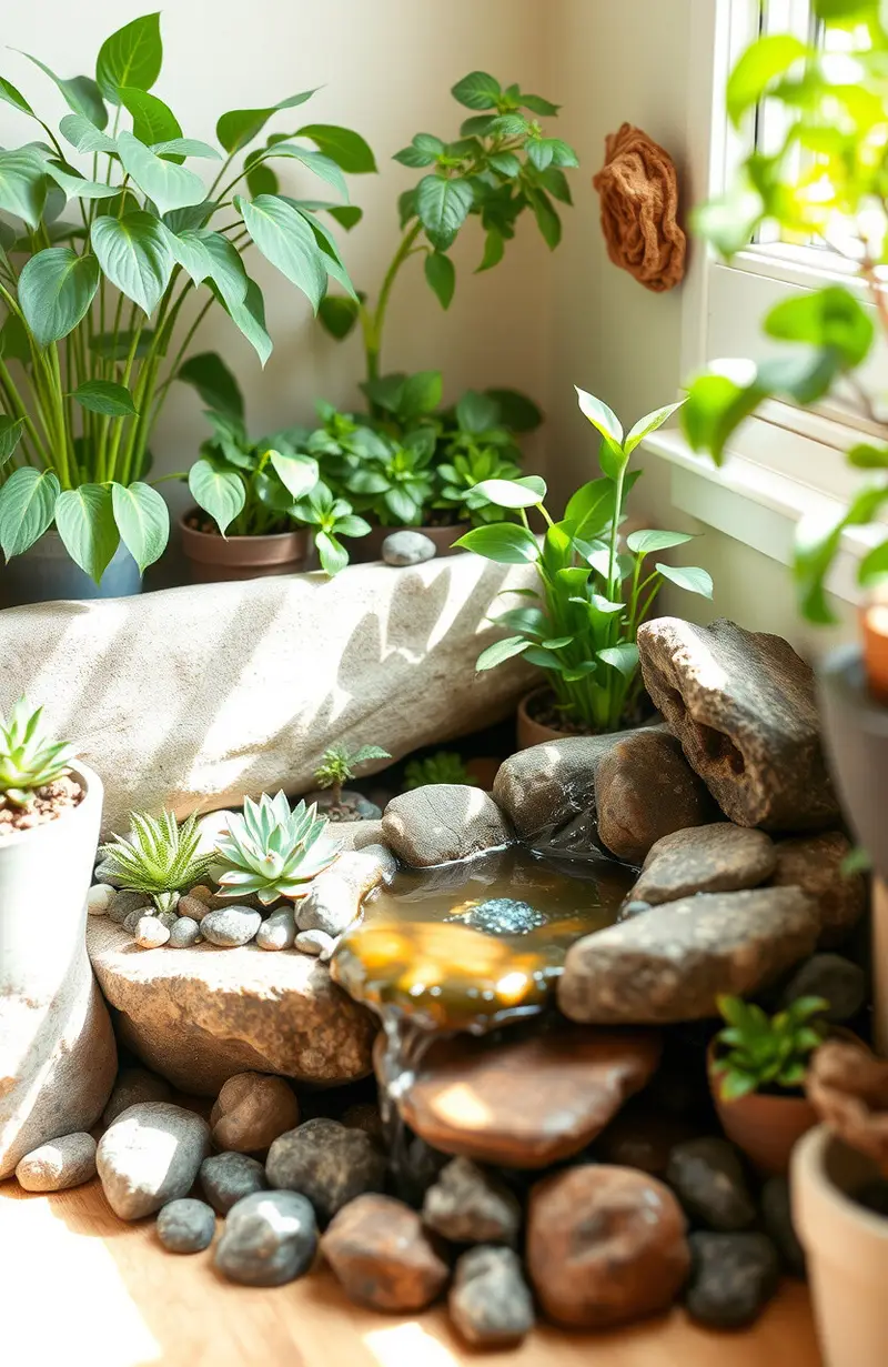 Bring the outdoors inside with a nature-themed corner filled with plants, rocks, and a small water feature. It’s like a mini garden for the senses.