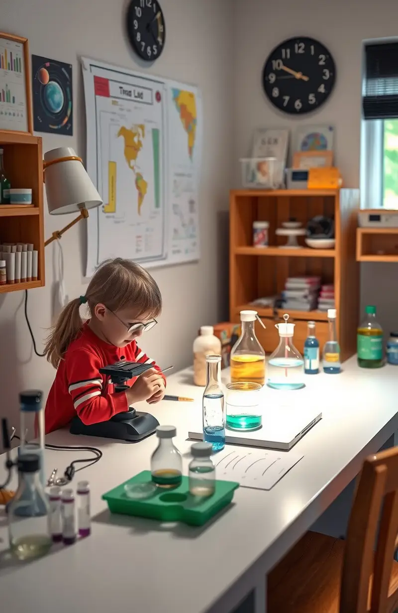 Turn a part of your home into a mini science lab with microscopes, test tubes, and charts. It’s a space for discoveries and experiments.
