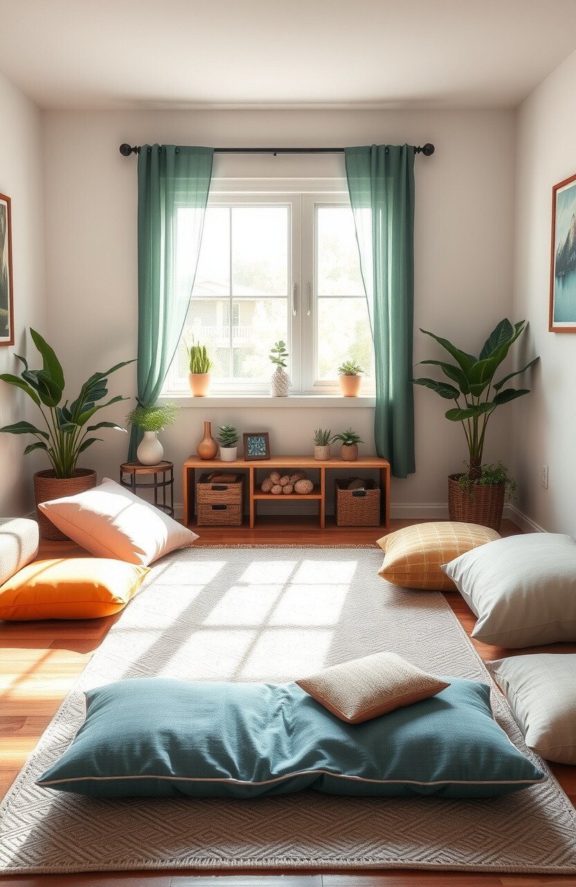 Create a peaceful meditation zone with cushions, calming music, and essential oils. It’s a sanctuary for relaxation and focus.