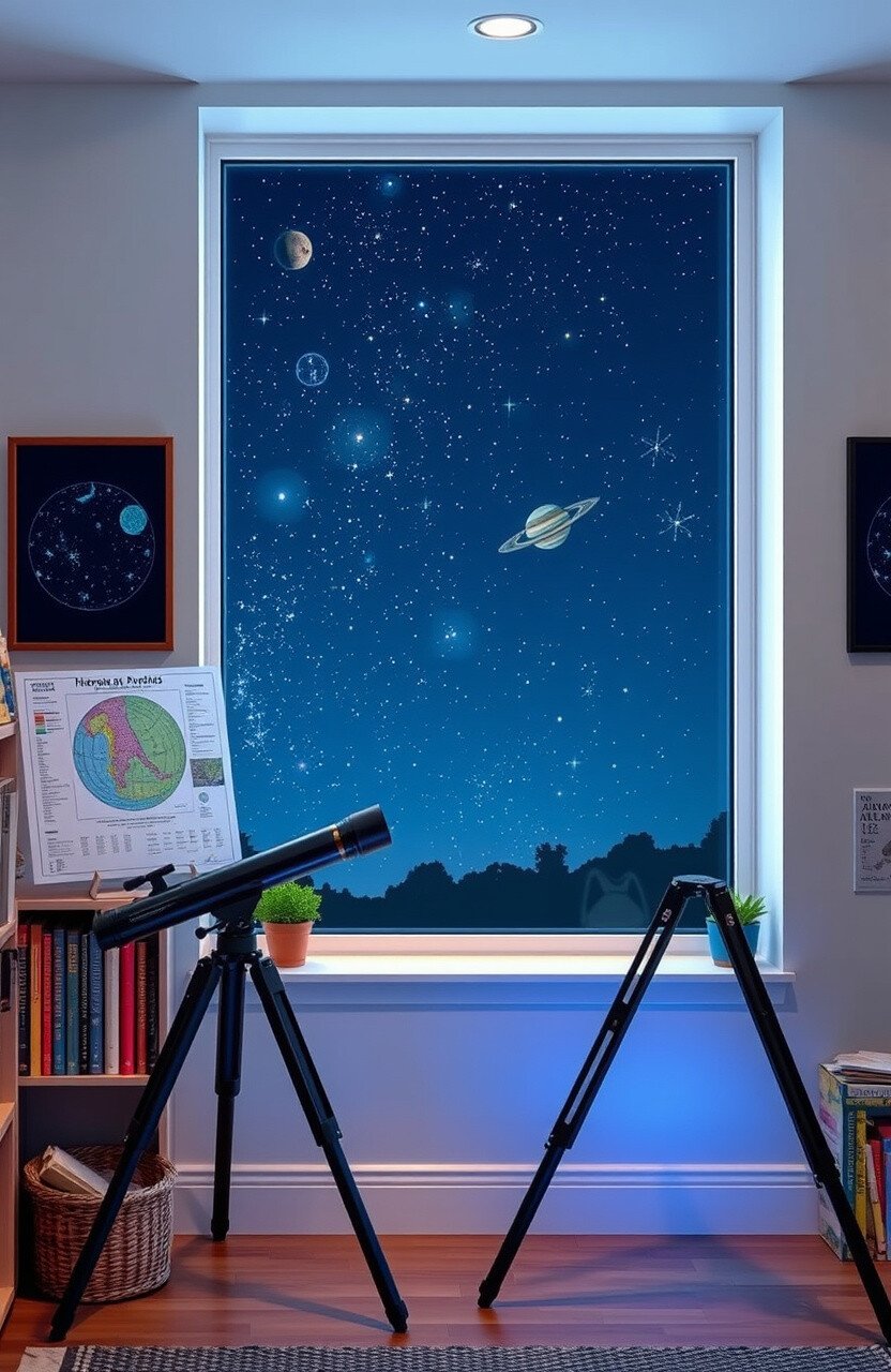 Create an astronomy alcove with star charts, telescopes, and glow-in-the-dark stars. It’s a window to the universe.