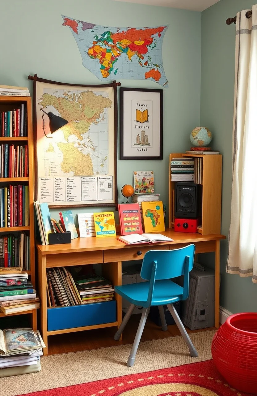 Include replica artifacts or historical maps for interest. Personalize with a timeline or history-themed decor.