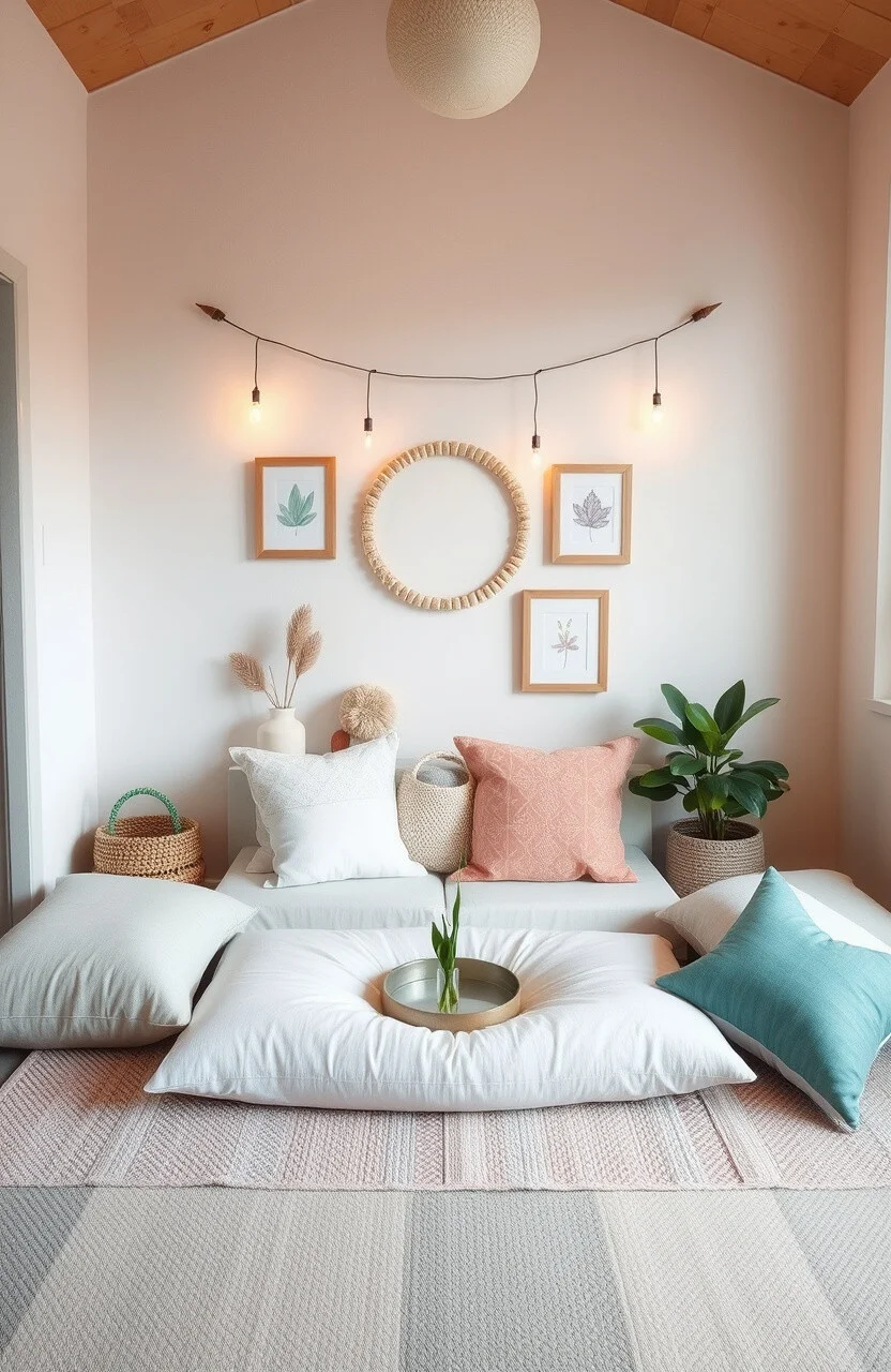 Cushions and decor can be budget-friendly, especially when using items you already have at home to create this tranquil space.