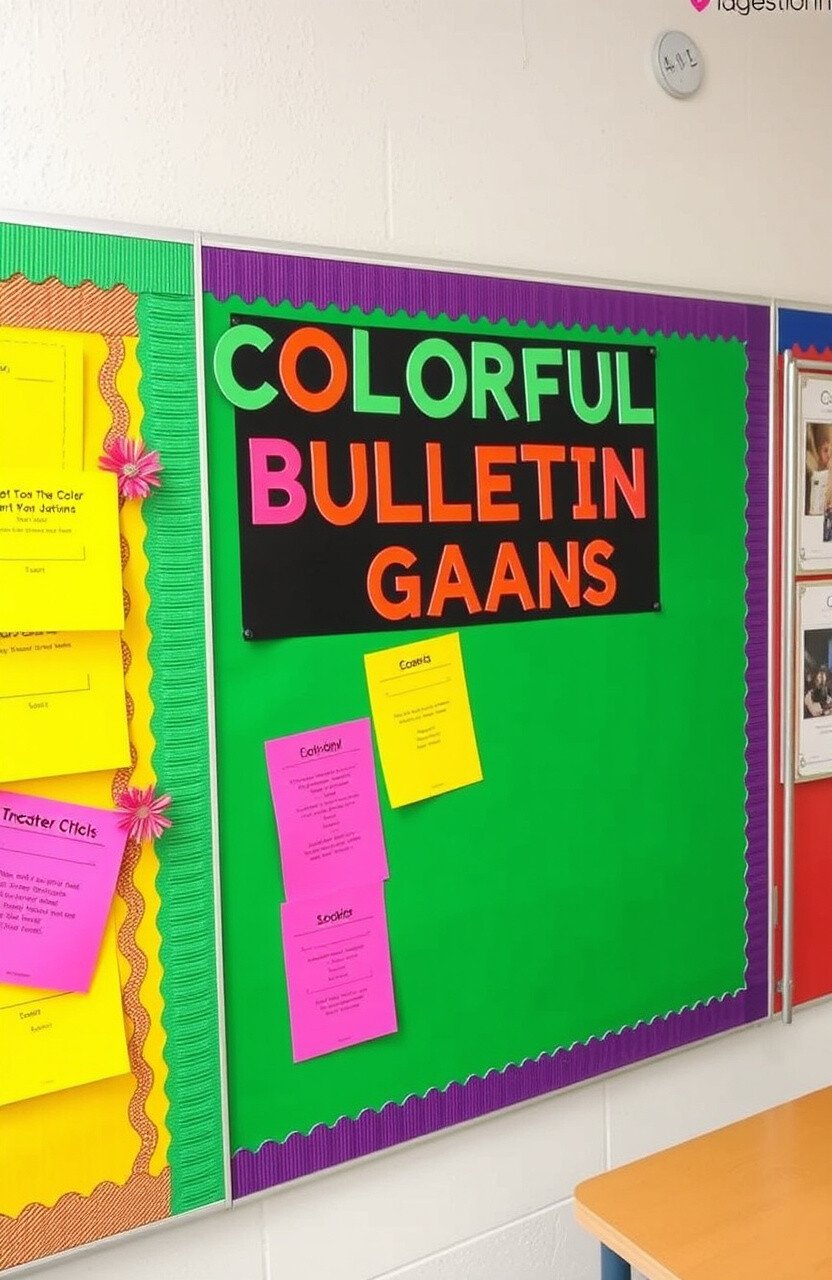 Decorating bulletin boards with color themes makes information pop. It draws students’ attention to important updates.