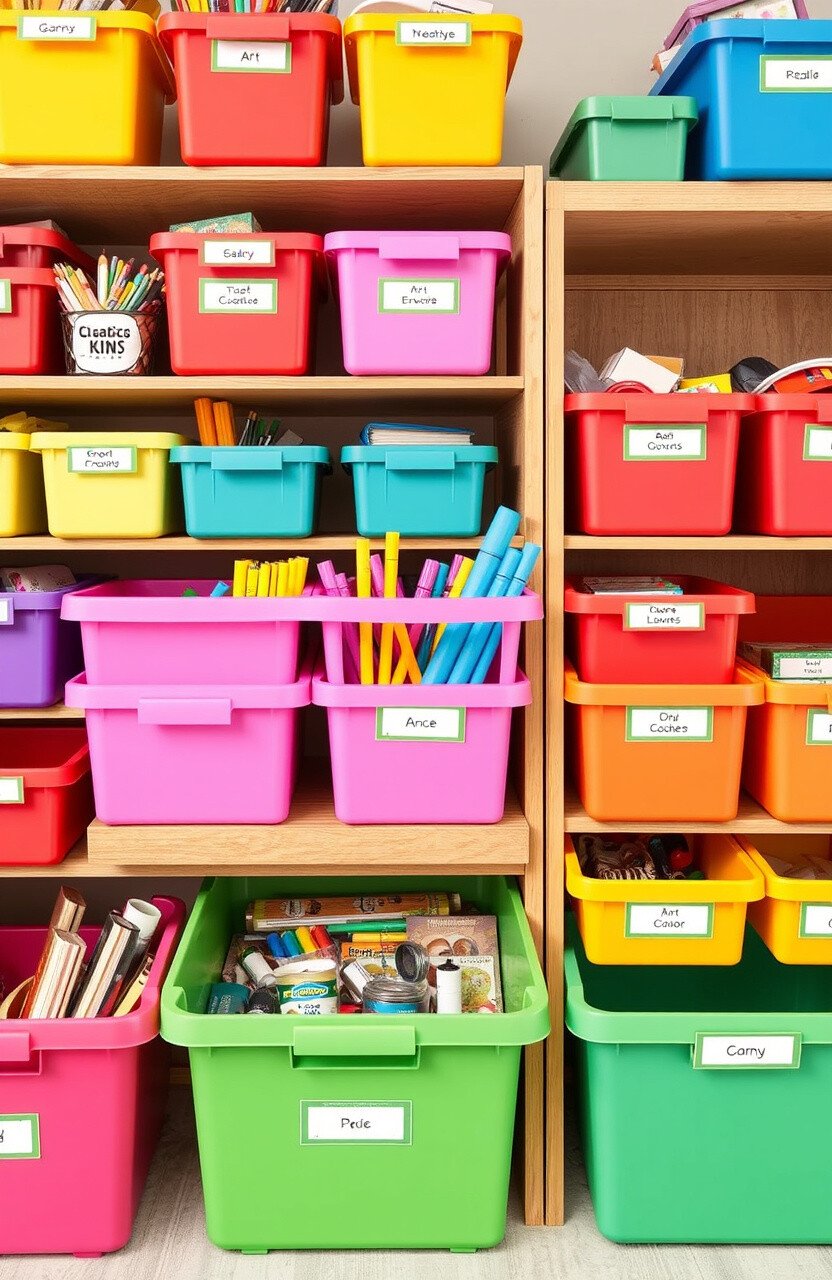 Using colorful storage solutions keeps the classroom tidy. It makes finding items easy and quick.
