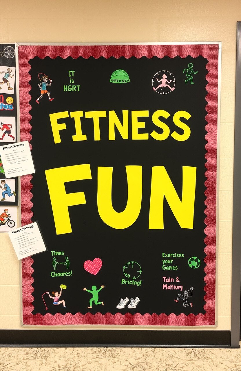 Promote physical activity with a board featuring exercises and games. Use bright images and fun fonts.