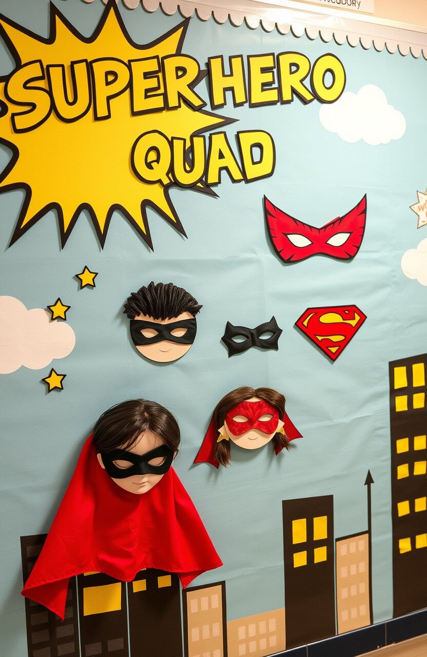Celebrate everyday heroes with a superhero-themed board. Use comic-style fonts and vibrant colors.