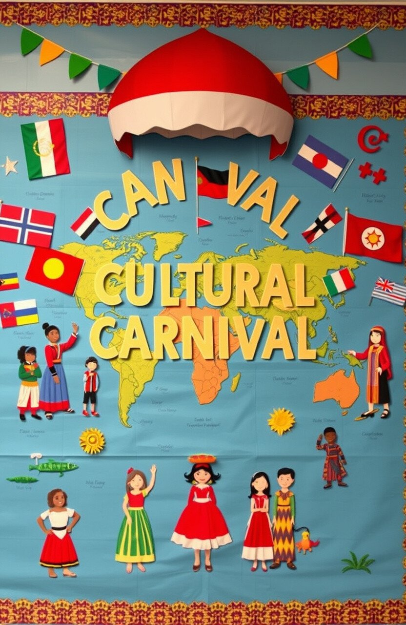 Celebrate diversity with a board showcasing different cultures around the world. Use flags, traditional dress, and fun facts.