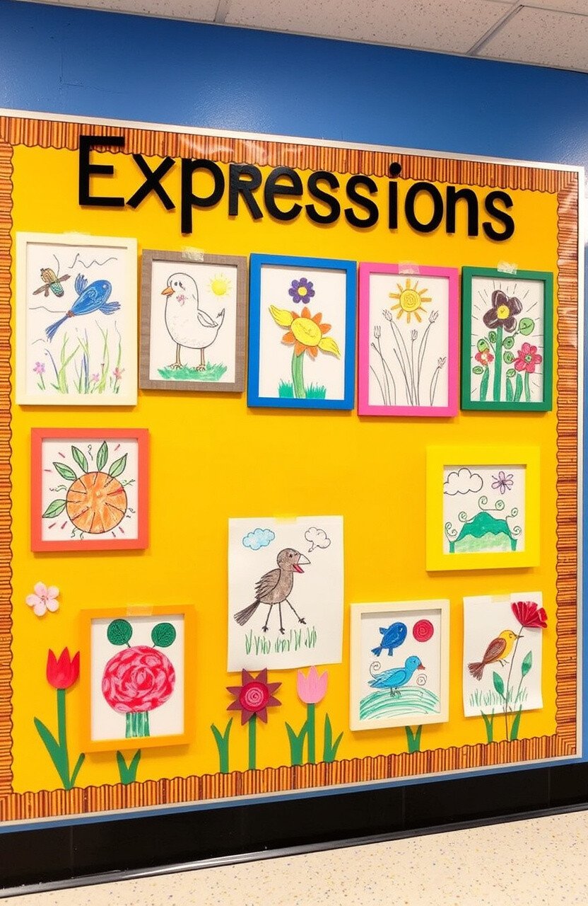 Turn your bulletin board into a mini art gallery featuring student artwork. Use frames made from colorful paper to highlight each piece.