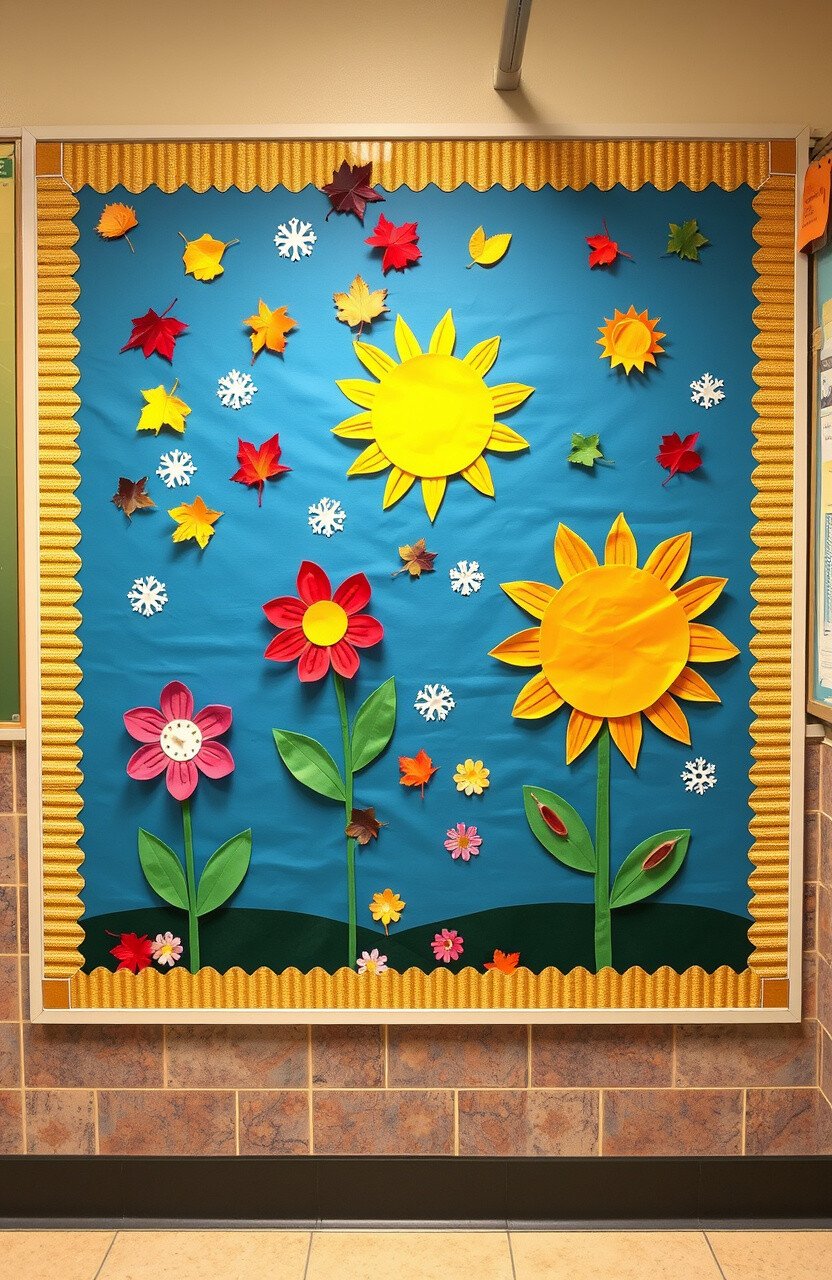Capture the magic of changing seasons with a bulletin board that morphs throughout the year. Use colorful leaves for fall, snowflakes for winter, flowers for spring, and suns for summer.