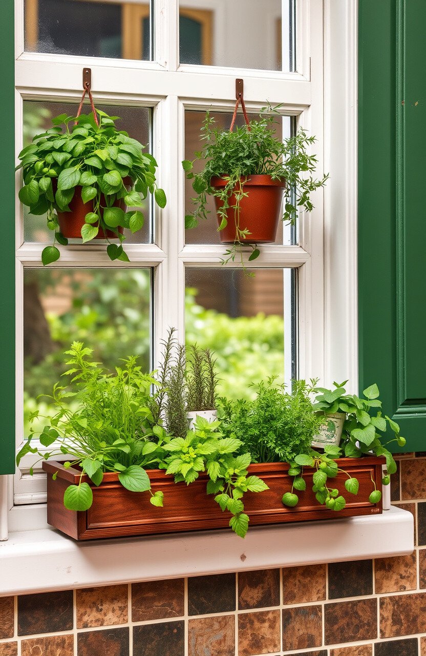 Hang herb boxes on your windows. They bring greenery and freshness to your kitchen.