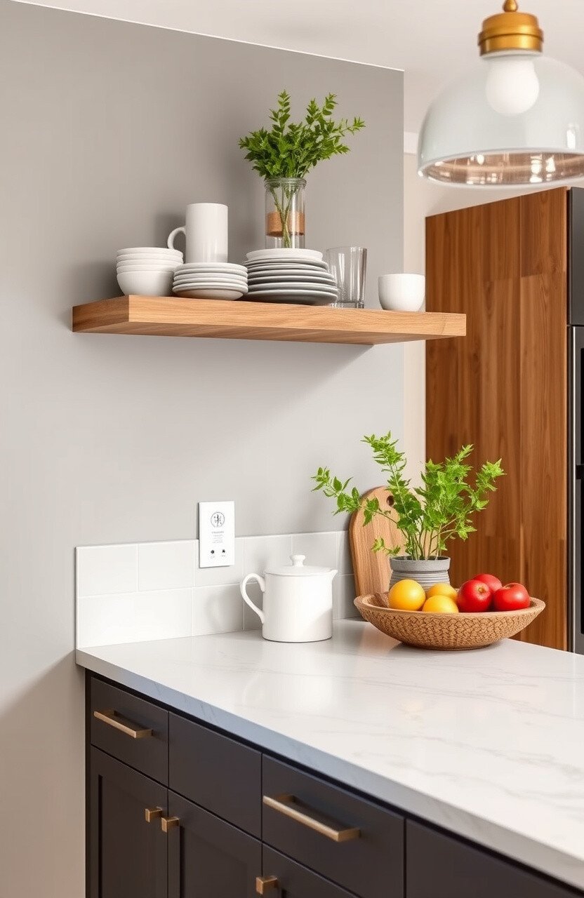 Corner shelves can display cookbooks or plants. They add personality to your kitchen.