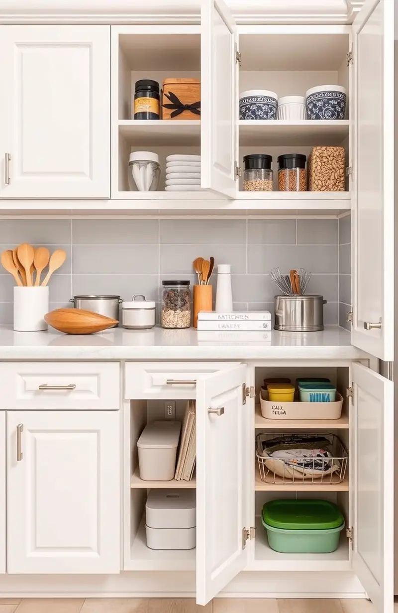 Keep your kitchen tidy with cabinet organizers. They make finding things a breeze.