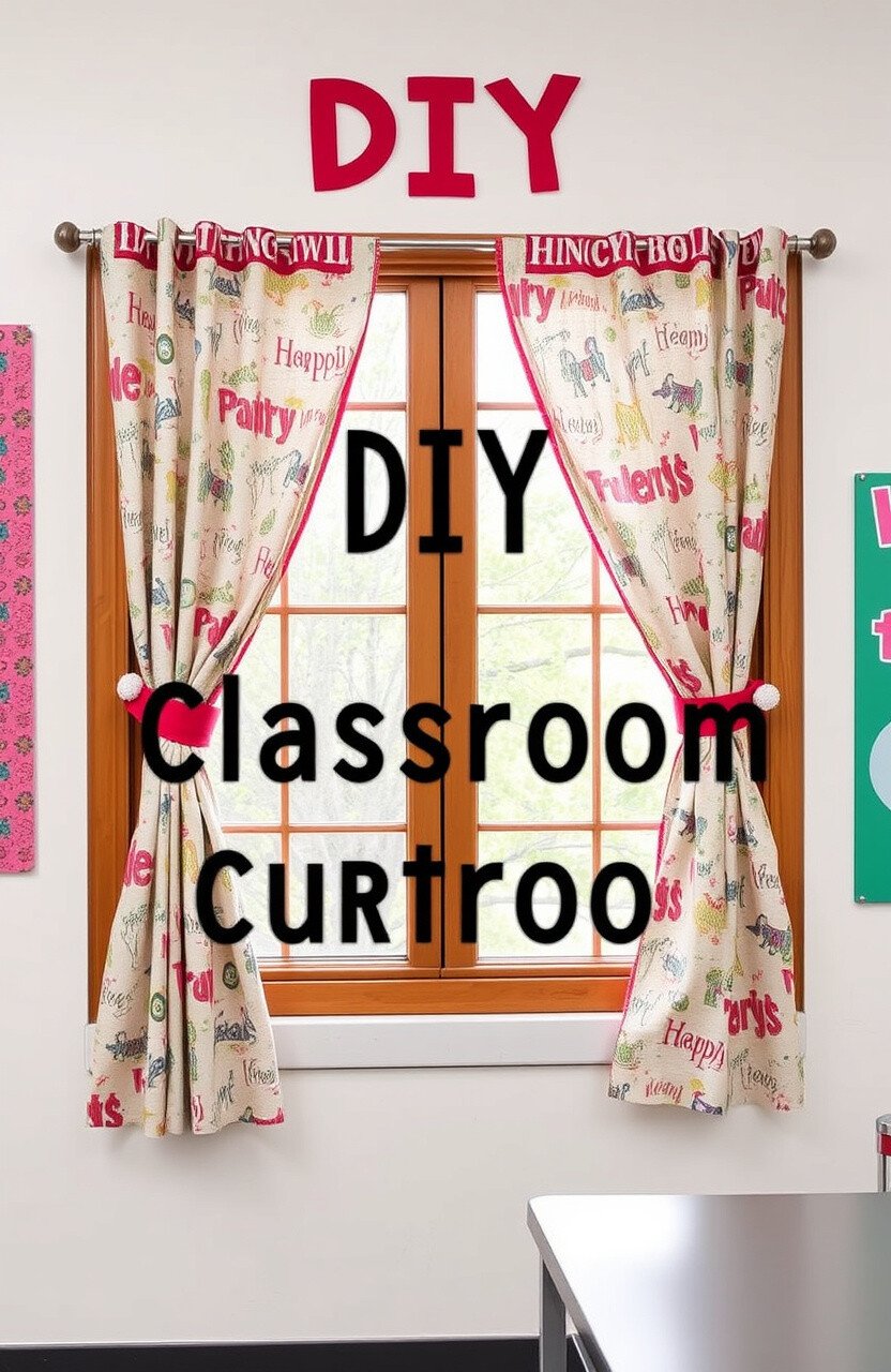 DIY classroom curtains add charm and privacy. Use fabric in fun patterns to dress up windows.