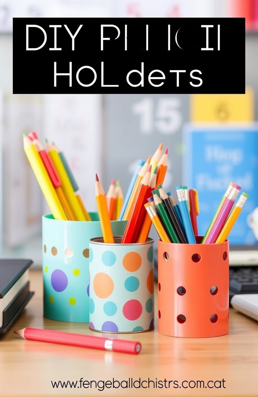 DIY pencil holders keep desks tidy. Use containers for pencils, pens, and markers.