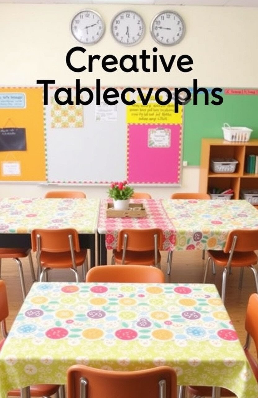 Creative tablecloths add color and style. Use patterns or themes to match the classroom decor.