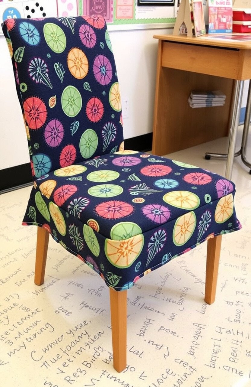 Personalize by letting students help with design. Unique chair covers are a stylish and practical trend.
