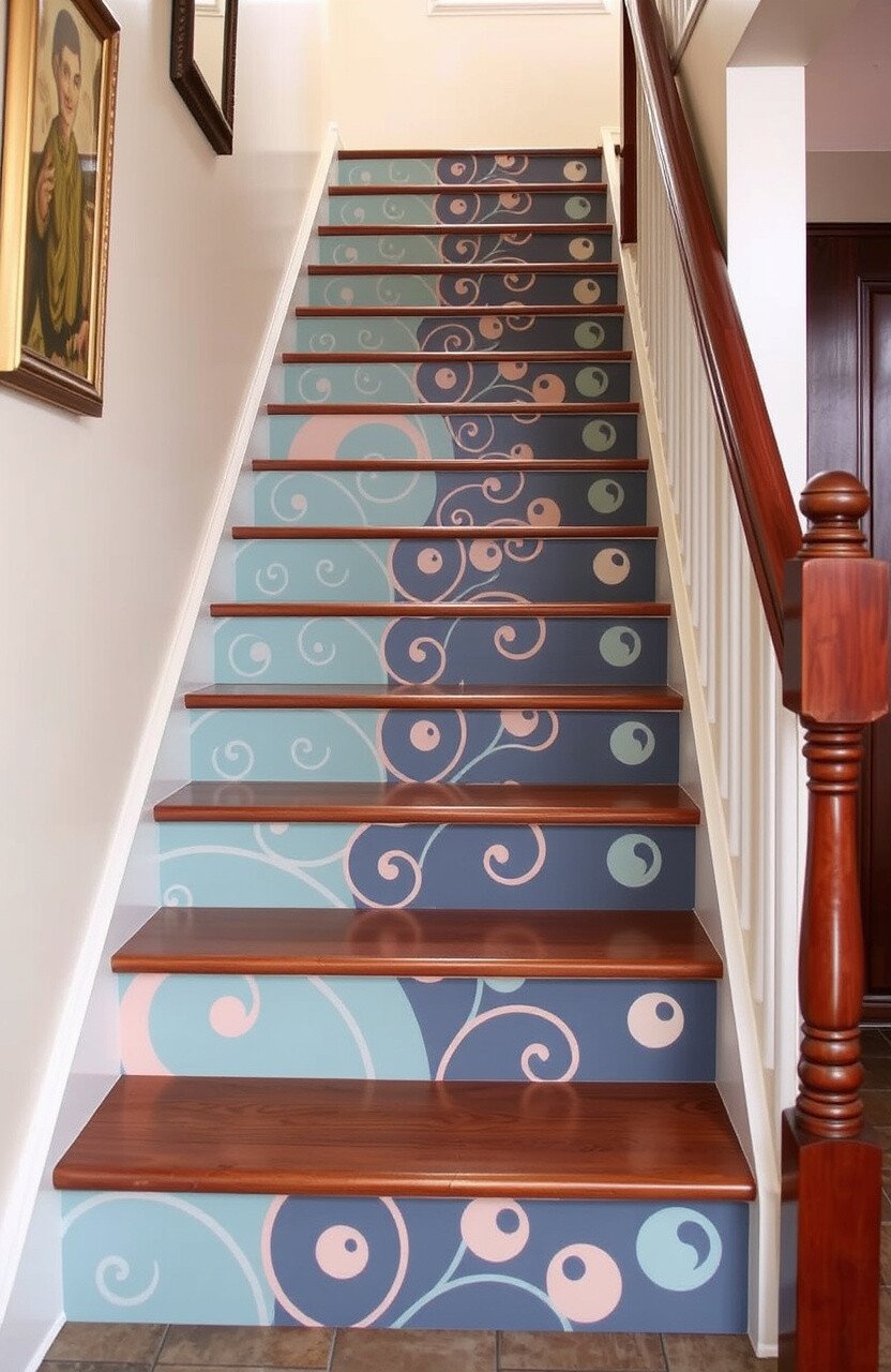 Add some fun to your stairs with whimsical designs. Swirls, curls, and playful patterns can brighten your day.
