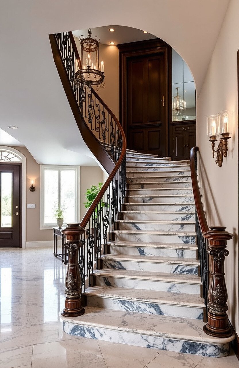 Make your staircase a grand entrance with luxurious materials. It’s a stunning way to impress guests.