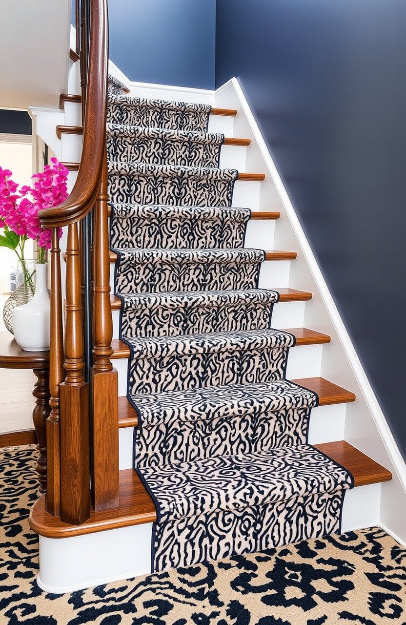 Geometric patterns are a trendy way to update your stairs. They add a modern twist and visual interest.