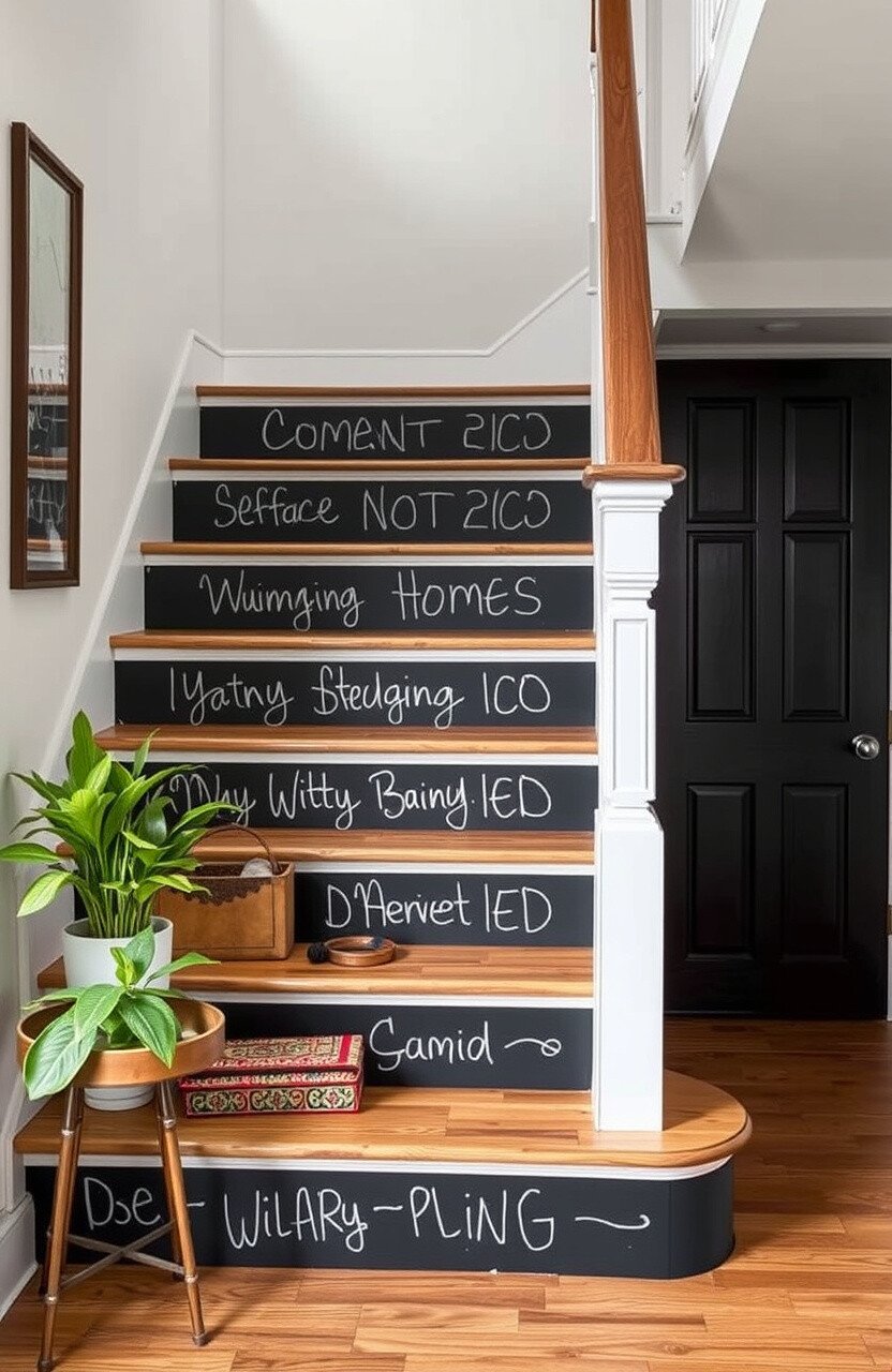 Chalkboard paint on your stair risers allows unlimited creativity. It’s a fun way to personalize your space.