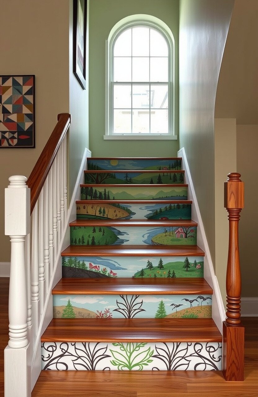 Turn your staircase wall into an art gallery with murals. It’s a creative way to personalize your space.