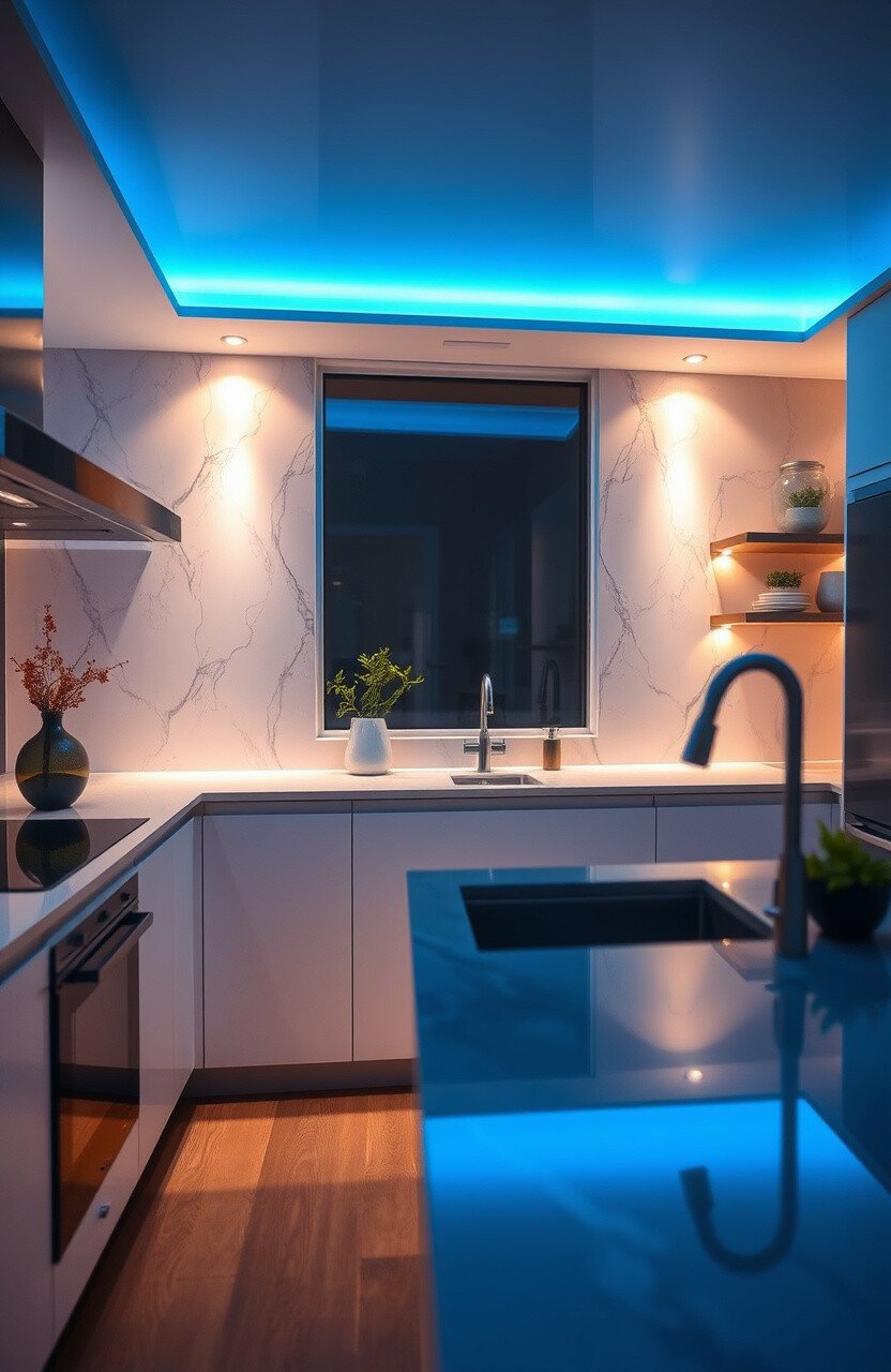 Glass countertops add a unique, contemporary touch to the kitchen. They can be customized with colors and lighting for a stunning effect.