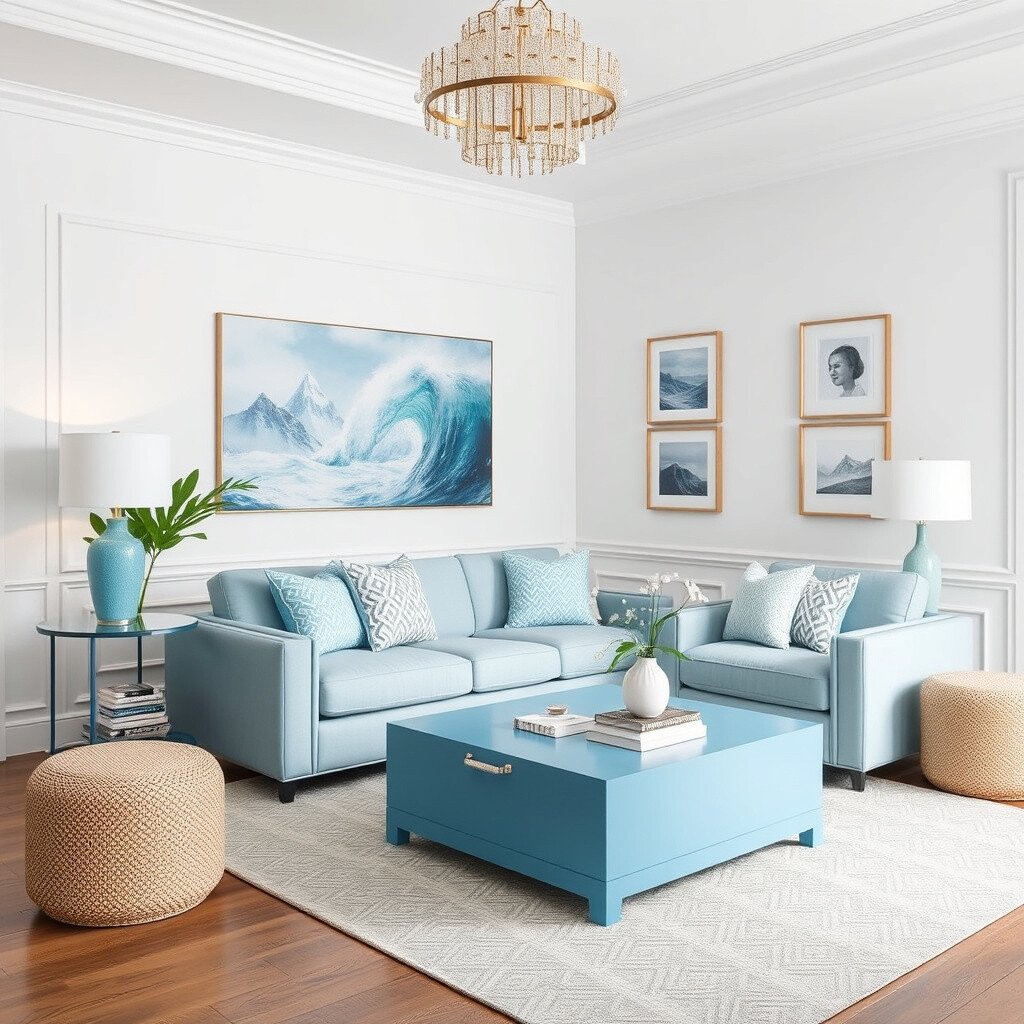 Add a statement piece of cool blue furniture to your room, like a chair or a coffee table. It’s a bold choice that can refresh your entire space.
