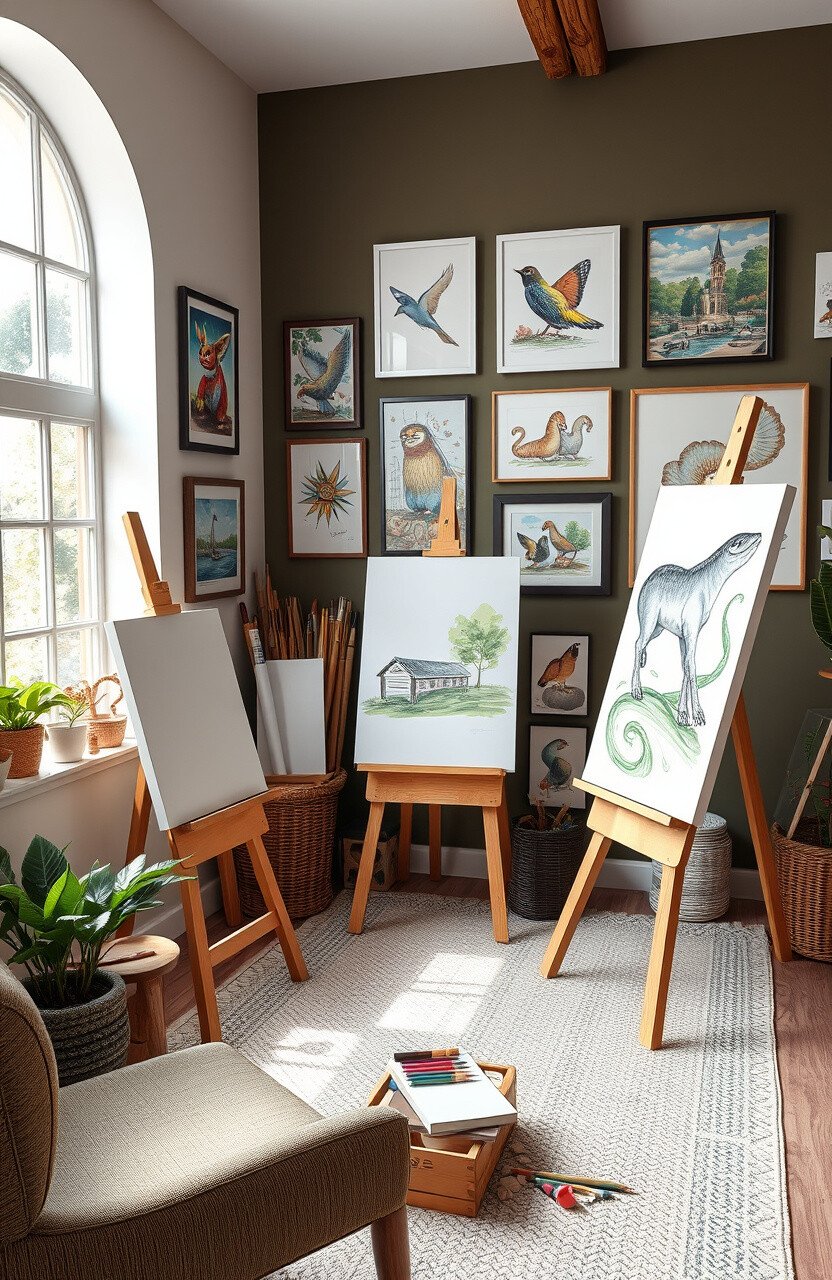 Design a creative space with easels and art supplies for budding artists. Hang artwork on the walls for inspiration.