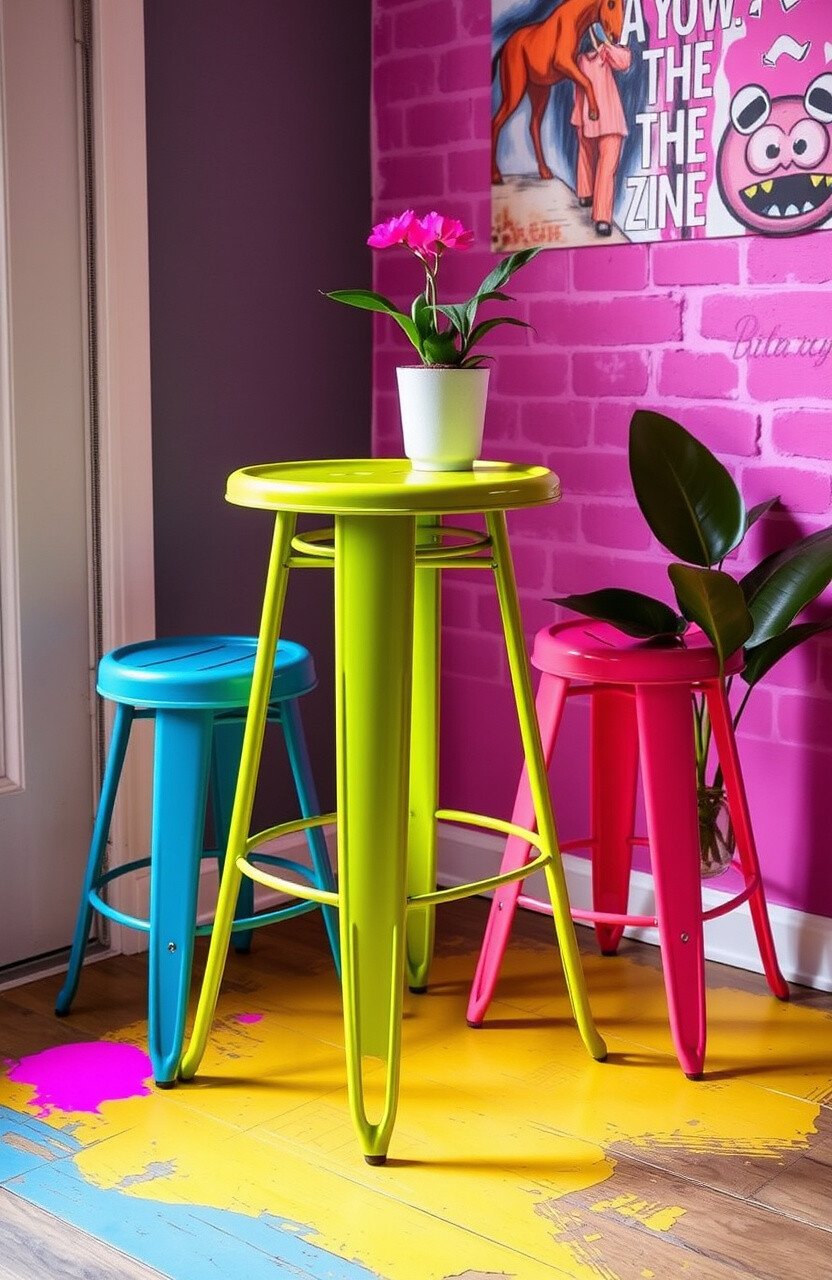 Neon paint adds a pop of vibrant color. It’s like giving your stools a bold makeover.