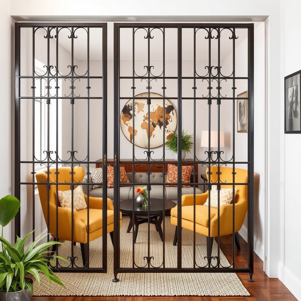 Define spaces within your home using metal room dividers. They offer privacy while adding a decorative element.