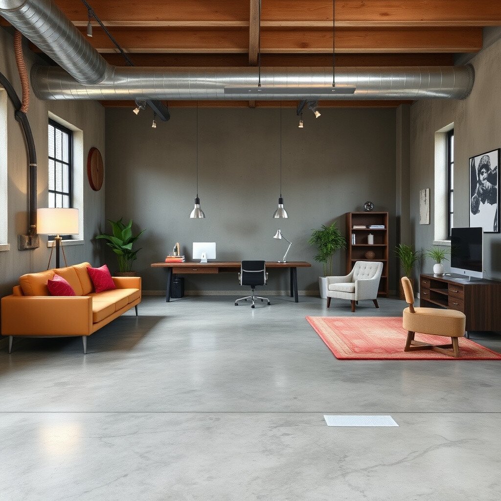 Concrete floors are the epitome of industrial chic. They are durable, low-maintenance, and have a sleek, modern appeal. The neutral tone provides a versatile backdrop for different color schemes and furniture styles.