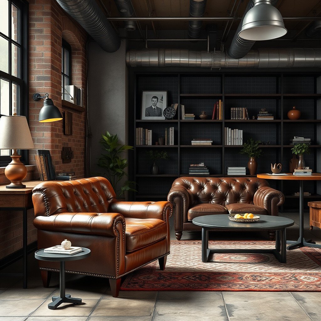 This material brings warmth to the industrial elements, creating a balanced and inviting atmosphere. Leather furniture can be an investment, but its longevity and timeless appeal make it worthwhile.