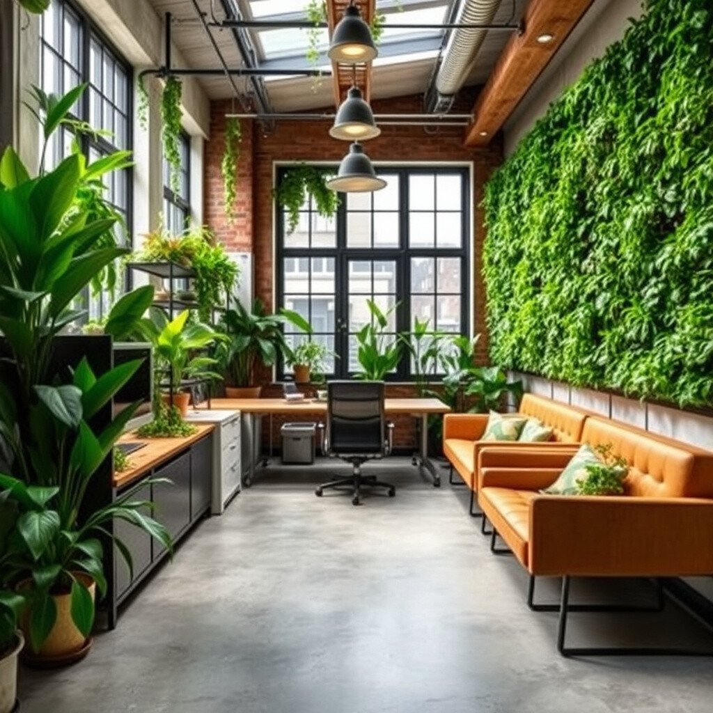 Bring the outside in with green elements like plants or living walls. They add life and vibrancy to the industrial theme, creating a healthier and more inviting environment.