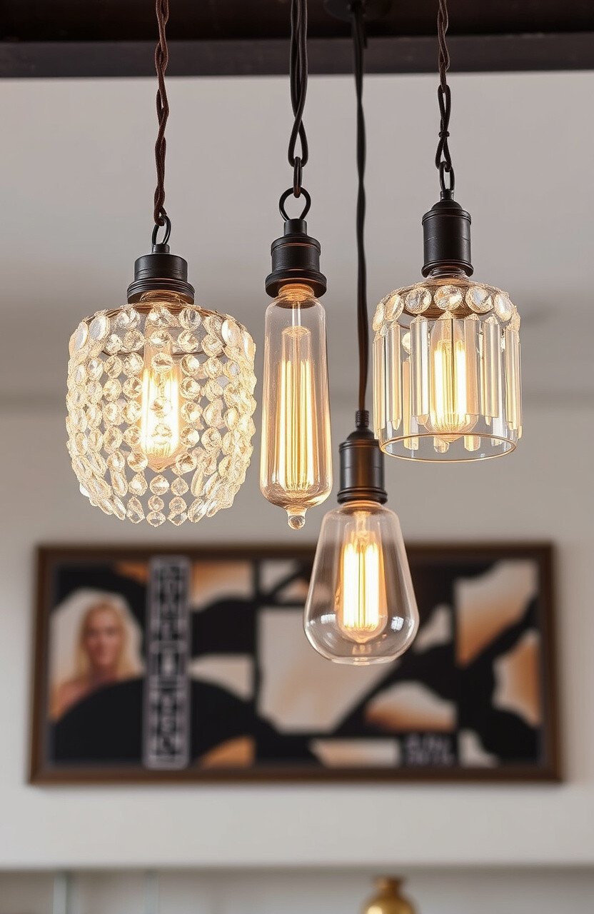 Combining industrial elements with crystals creates a chic, glamorous look. These pendants add a touch of elegance to any space. They’re perfect for adding a bit of sparkle to your decor. Use them in spaces where you want to create a luxurious feel.