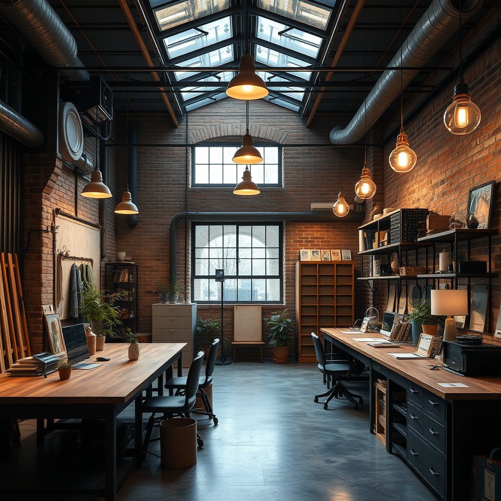 Lighting sets the mood and can significantly impact creativity. Industrial spaces benefit from varied lighting options.