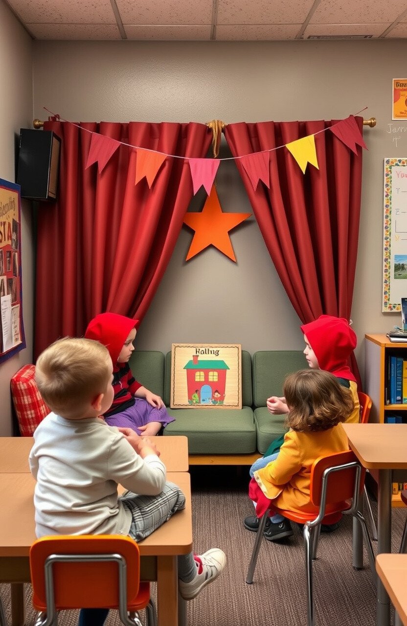 Drama corners with costumes and props invite students to step into different roles. Imagine a space where creativity and confidence can shine through acting.