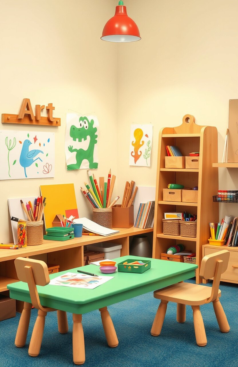 An art corner stocked with supplies can inspire creativity and self-expression. Think of colorful paints, sketchpads, and various craft materials that invite exploration.
