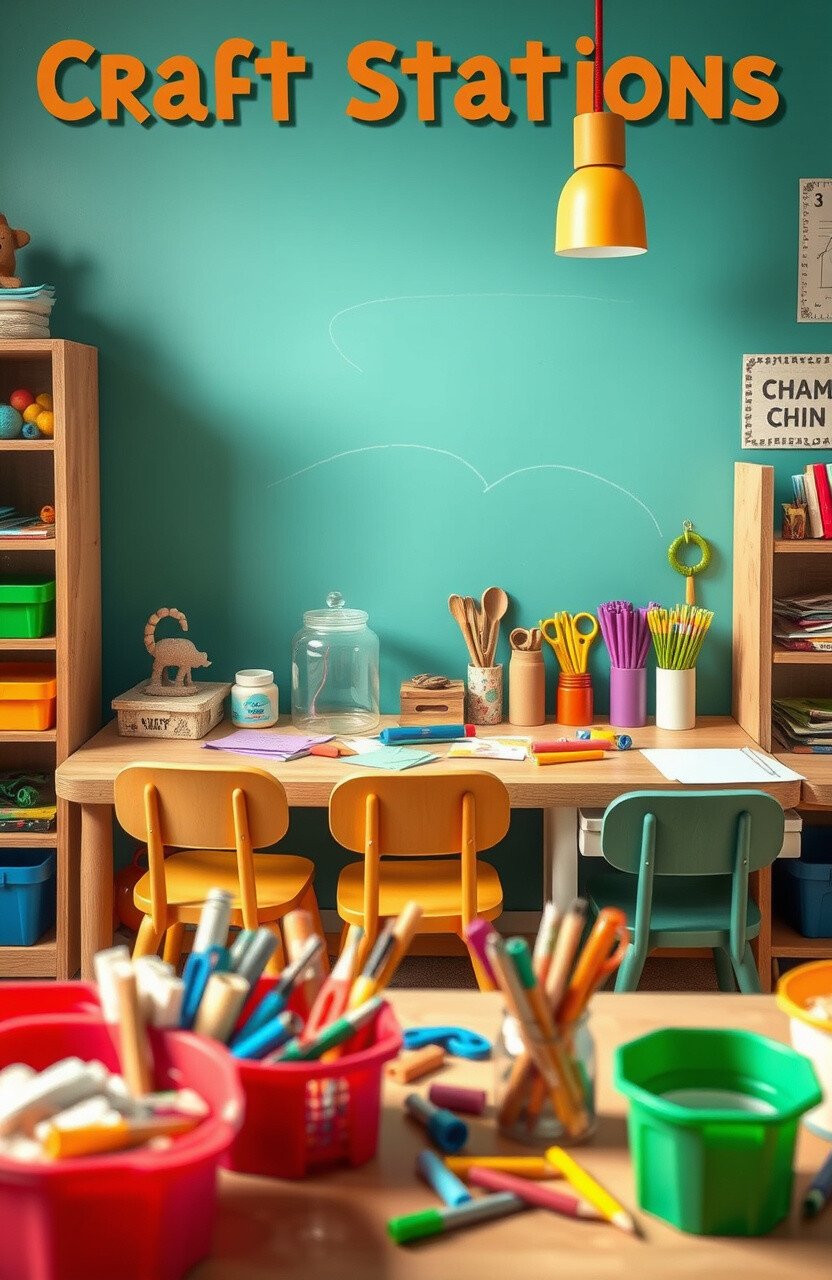 Craft stations with a variety of materials invite creativity and hands-on learning. Picture a space where students can make and create.