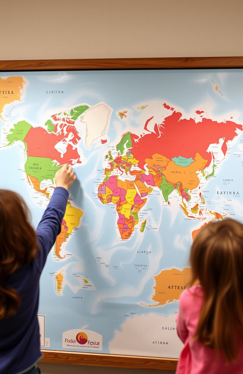 Make it special with themed geography projects or challenges. Encourage students to contribute to the map’s details.
