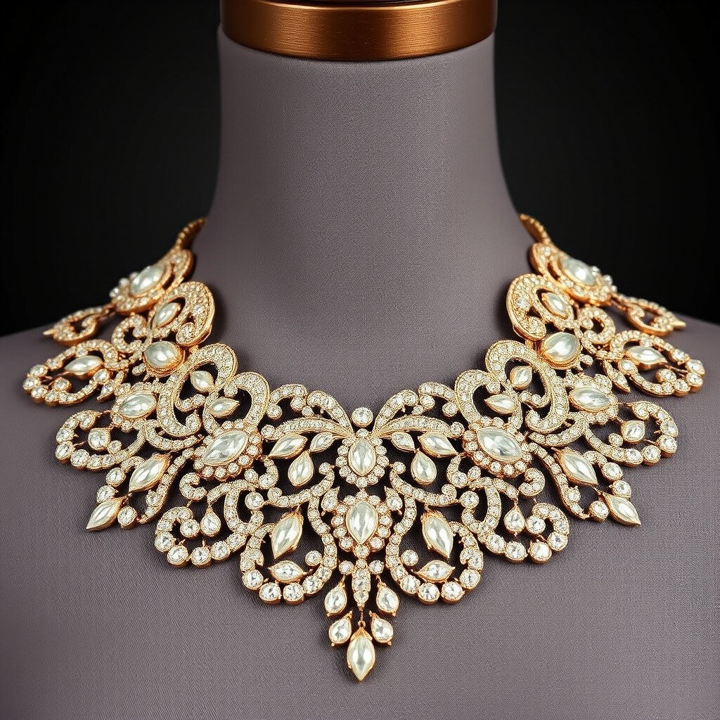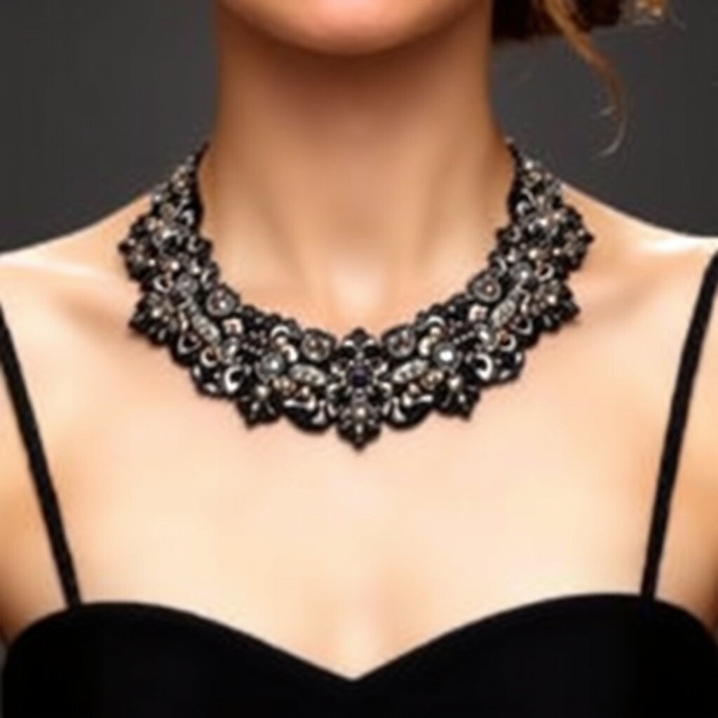 Pair it with a strapless gown to make your neckline pop. The choker’s uniqueness lies in its intricate embroidery, which tells a story of elegance and grace. It’s an affordable option, with prices typically ranging from $30 to $50, ensuring you get a glamorous look without breaking the bank.