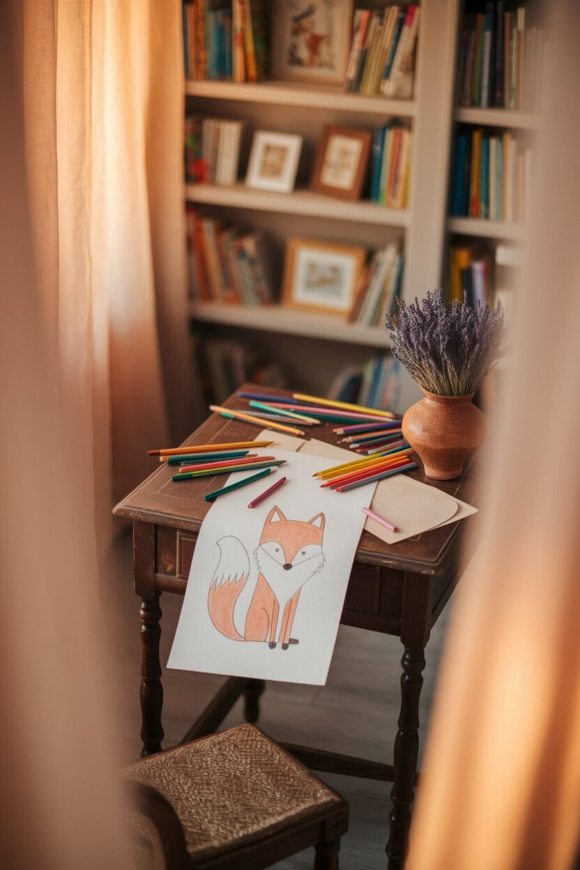 Set up a creative corner with art supplies and a comfy chair. It’s a nook for inspiration and daydreaming.