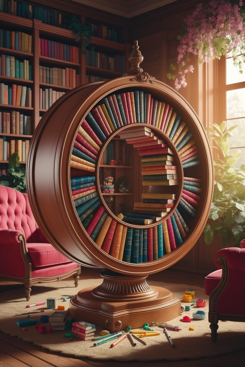 A rotating bookshelf is like a carousel of books. It’s a fun and interactive way to store their favorite stories.